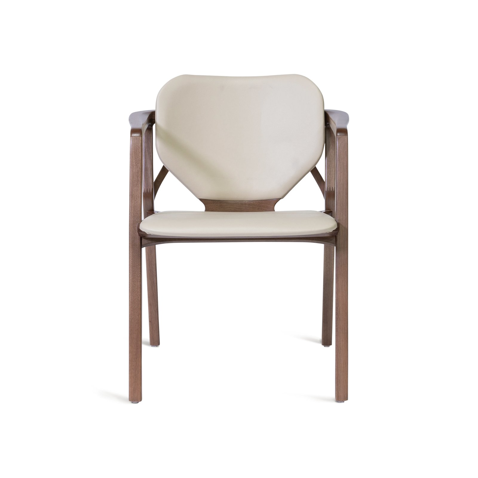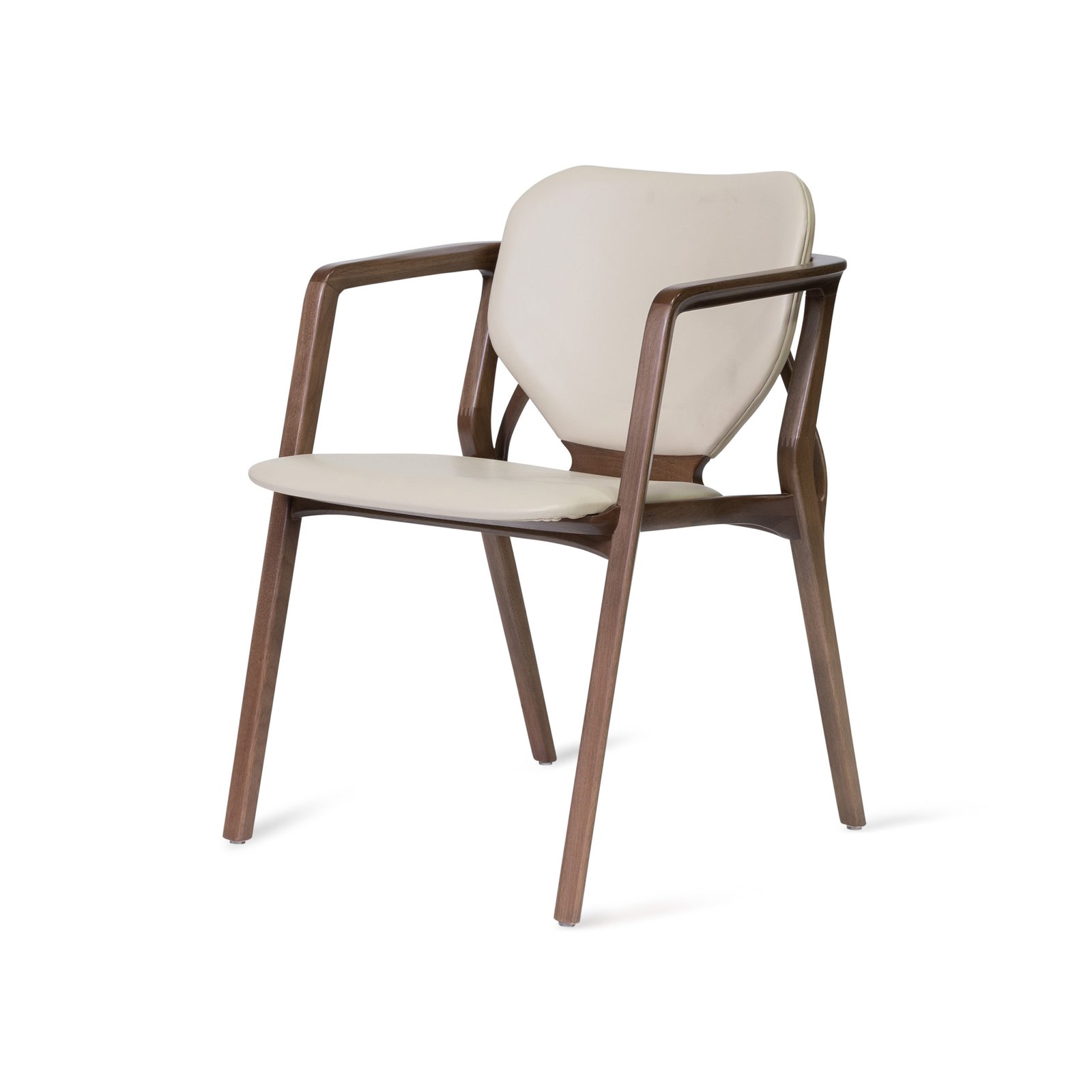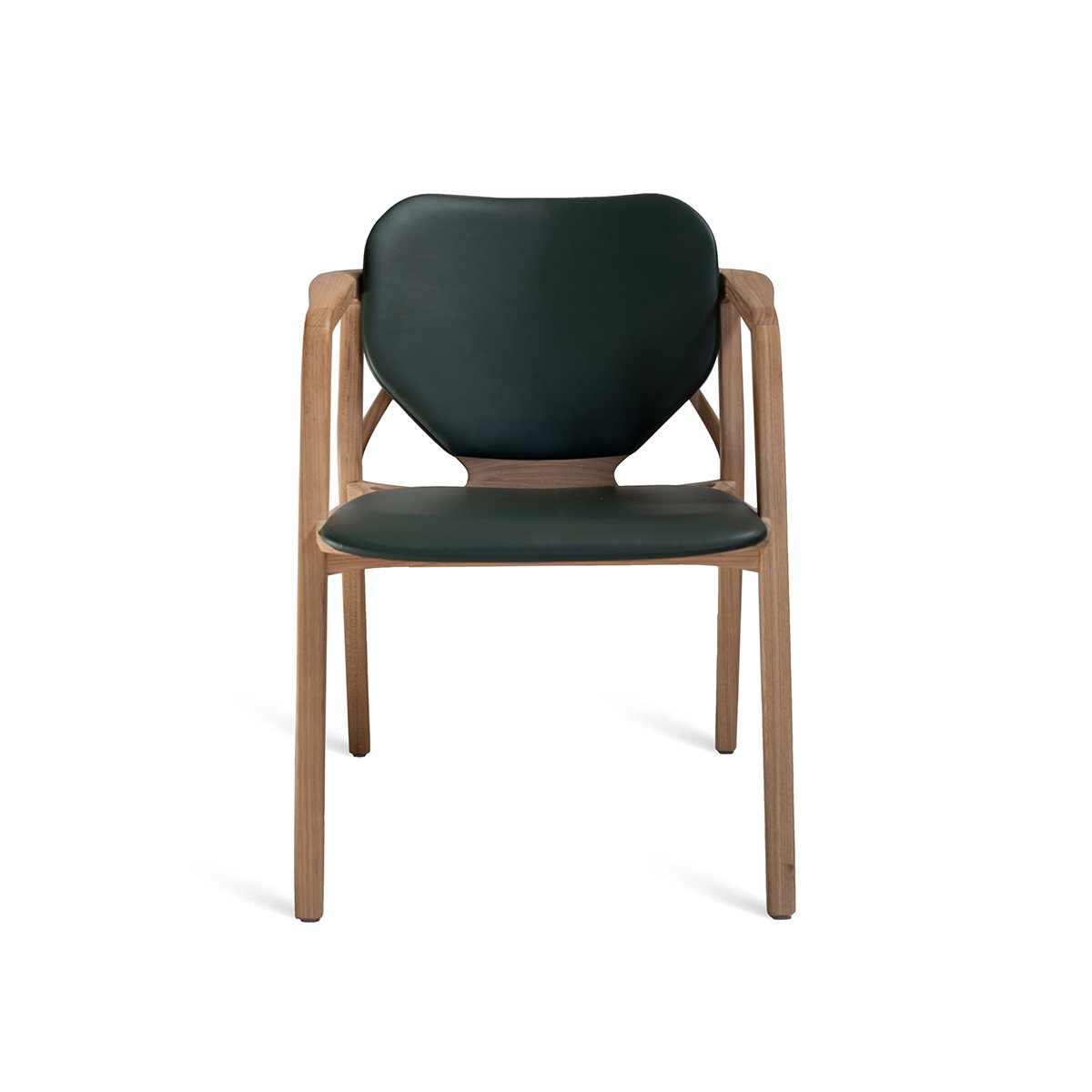 An enormous leaf rooted in the bucolic grounds of his manufacturing facility inspired the intriguing back lines of the Karla Armchair. Named for the first crush of his youth, Karla the woman is determined and focused. Visually delicate, the chair is superior in strength. Like Karla.