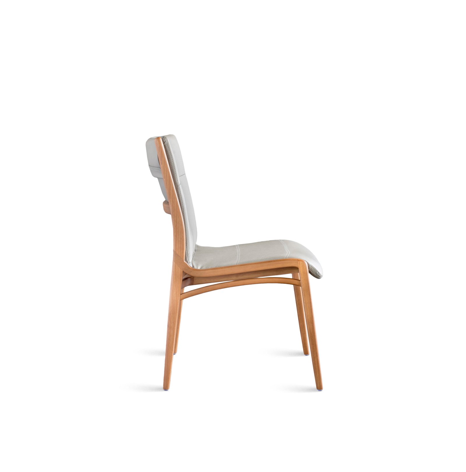 Modern chair by Aristeu Pires hand finished in sustainably harvested Brazilian hardwood. Upholstered in leather or fabric.